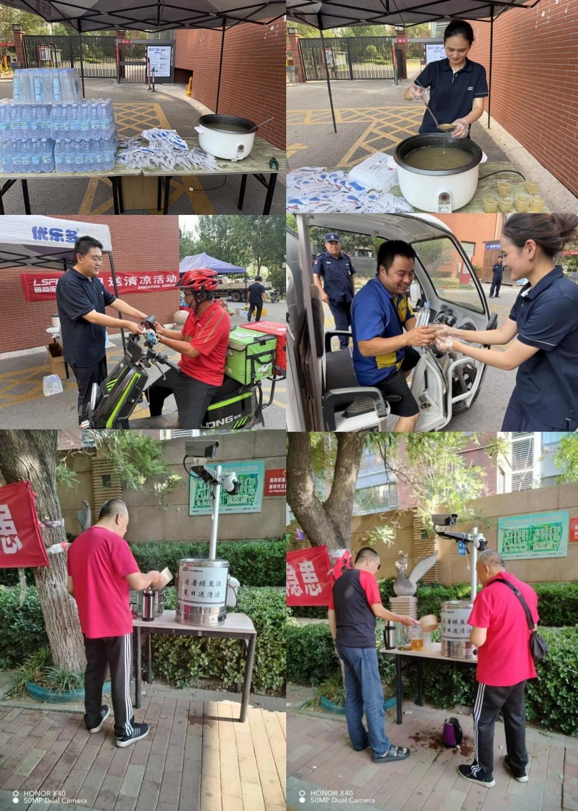 菏澤鳳凰城和濟(jì)寧南池公館的工作人員為業(yè)主、快遞員和外賣(mài)小哥送上貼心關(guān)懷——一把把印著溫馨提示的扇子驅(qū)散燥熱,一瓶瓶冰鎮(zhèn)礦泉水解渴降溫,一碗碗精心熬制的綠豆湯清甜解暑。接過(guò)清涼的瞬間,笑容在每個(gè)人臉上綻放。這份夏日里的惦念,是魯商服務(wù)對(duì)業(yè)主的暖心守護(hù),也是對(duì)戶(hù)外工作者的真誠(chéng)致敬。